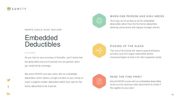 Health insurance embedded deductible. In a health plan with an embedded deductible no single individual on a family plan will have to pay a deductible higher than the individual deductible amount. Under the non-embedded deductible all family members qualify for the plan benefit if the total. Embedded Deductibles Embedded deductibles have two components.