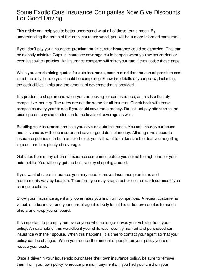 Some Exotic Cars Insurance Companies Now Give Discounts For Good Driv