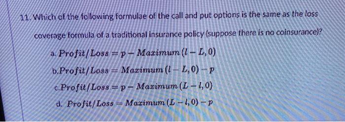 Solved 11 Which Of The Following Formulae Of The Call An Chegg Com