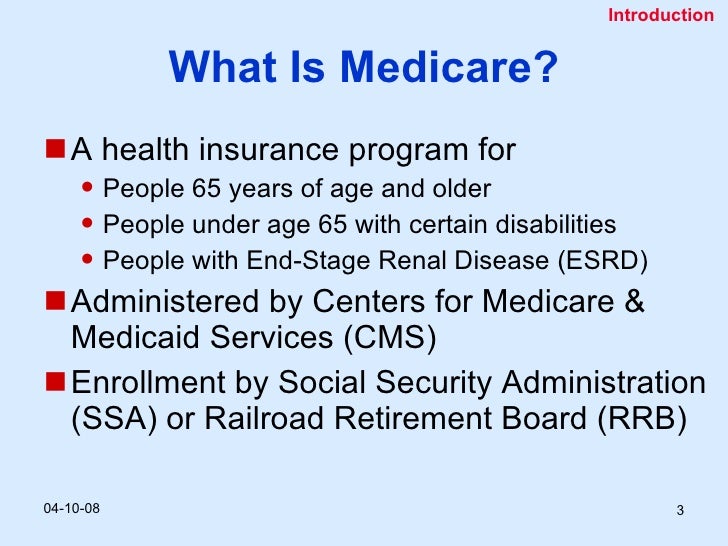 This training module was developed and approved by the Centers for Medicare Medicaid Services CMS the Federal agency that administers Medicare and Medicaid. Introduction to Medicare. Medicare 101 1 Medicare 101 Module 1B 2 Medicare 101.