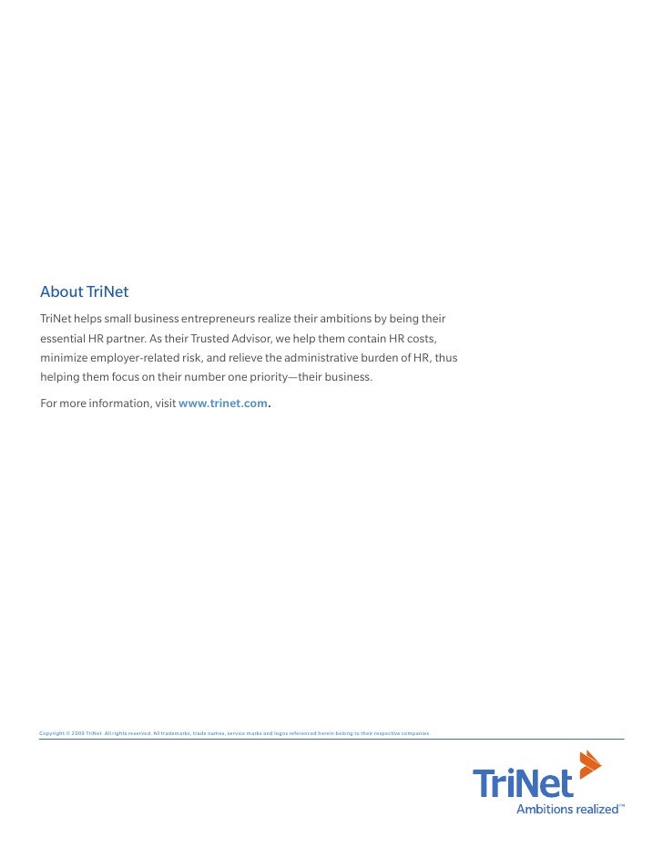 This is the employers chance to tell you why you should work for them. TriNet works with industry leaders in each benefit category so you can build a compelling benefit offering that shows your people how much you care. The information provided is from their perspective.