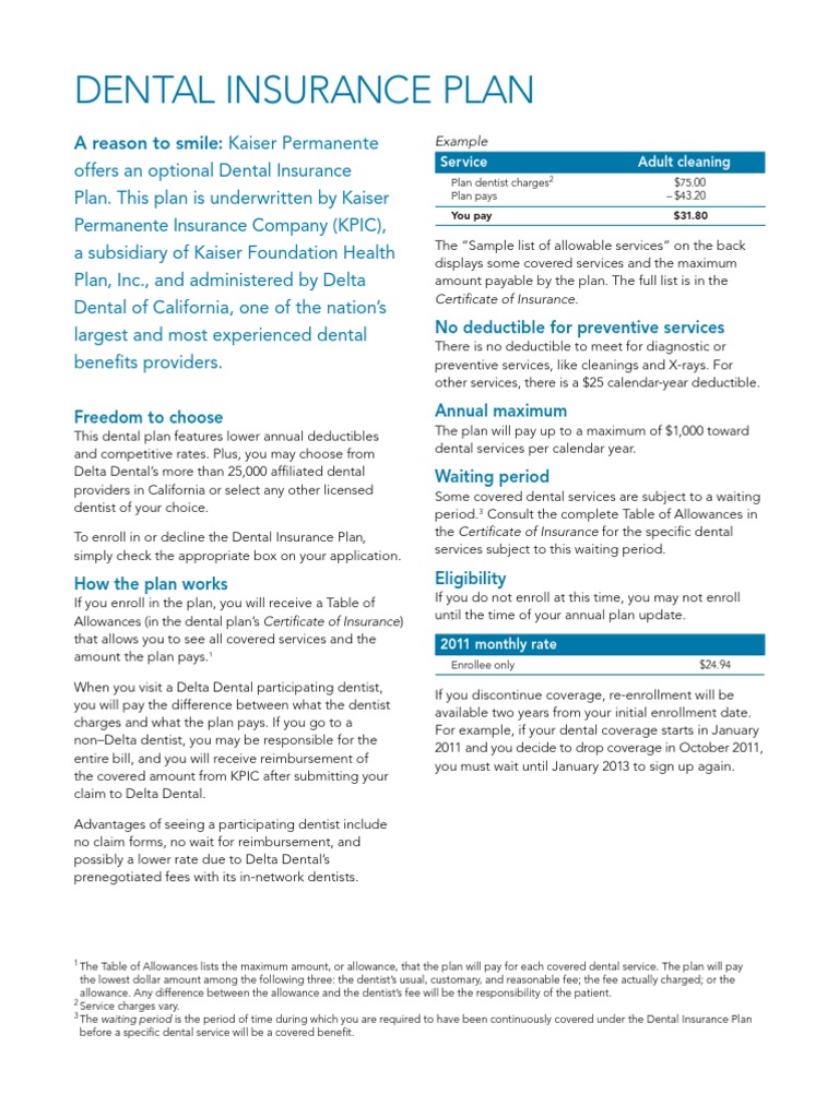 These companies are financially. This plan is available for adults and families who purchase their medical plan direct from Kaiser Permanente. Kaiser Permanente Health Insurance Plans - Permanent Dentures and Permanent Dentures Cost The content is good quality and useful content Which is new is that you simply never knew before that I know is that I even have discovered.